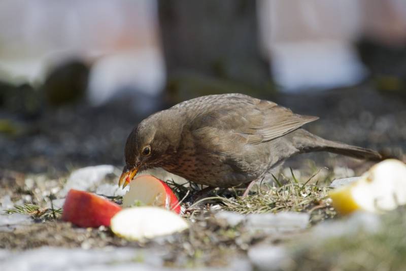 Dzwońce i zięby – słonecznik oraz konopie, a trznadle najchętniej jedzą słonecznik, proso i owies nagi. Kaczki, łabędzie i inne ptaki wodne chętnie jedzą ziarna zbóż, płatki owsiane i kasze. Dla kosów możemy wyłożyć rozdrobnione jabłka.