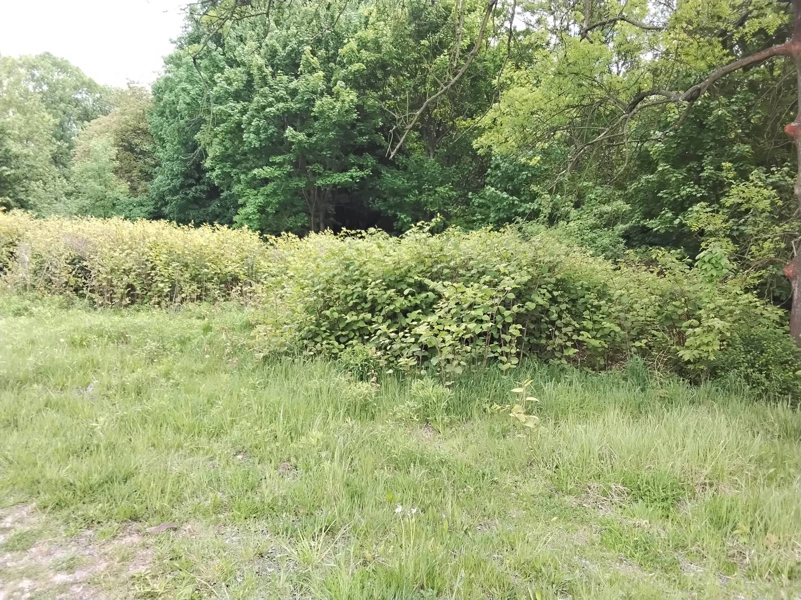 Fot. 2. Populacja inwazyjnego rdestowca (Reynoutria sp.) na obrzeżu zadrzewienia w północnej części Parku Śląskiego. Skuteczne i trwałe usunięcie rdestowców jest często poważnym wyzwaniem (autor: Damian Chmura).