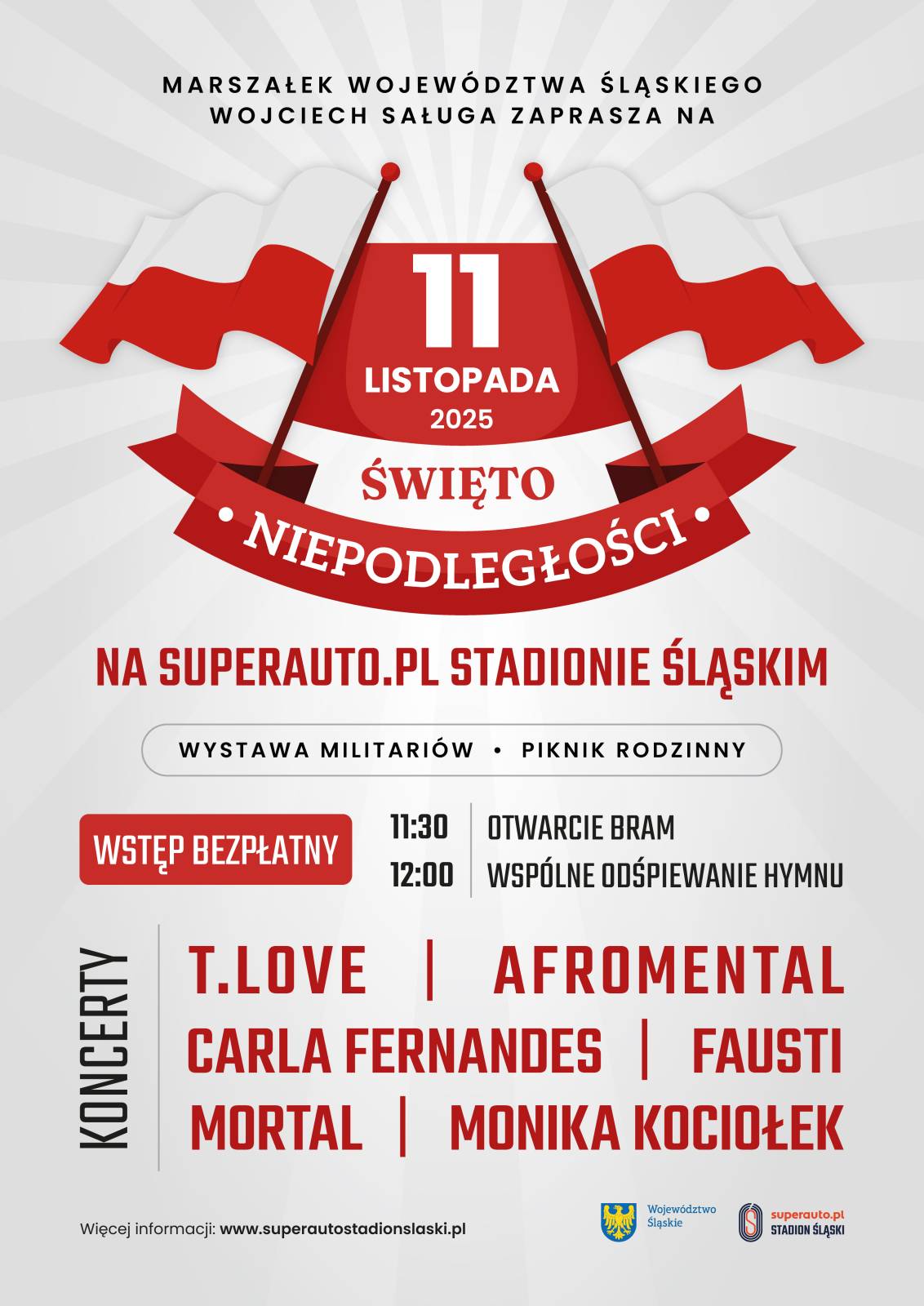 – Tradycyjnie w samym sercu regionu chcemy łączyć pokolenia i pokazać, że Narodowe Święto Niepodległości można obchodzić z dumą, ale też z radością – ciesząc się wspólnie muzyką, obecnością bliskich oraz wyjątkową atmosferą tego dnia. Chcemy, aby Superauto.pl Stadion Śląski był miejscem, w którym patriotyzm spotyka się z pozytywną energią i wspólnotą – zaprasza do wspólnego świętowania marszałek województwa śląskiego Wojciech Saługa.