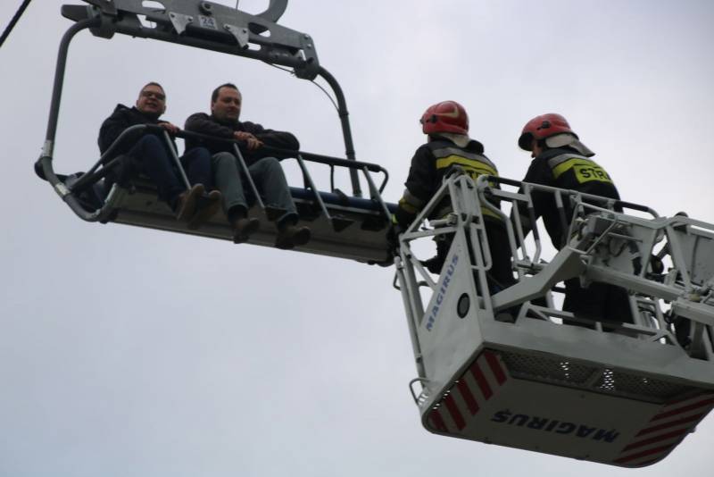 W akcji ratunkowej wzięły udział trzy zastępy Komendy Miejskiej Państwowej Straży Pożarnej w Chorzowie. Do ściągnięcia pasażerów użyto wozu- drabiny oraz specjalnych pasów.