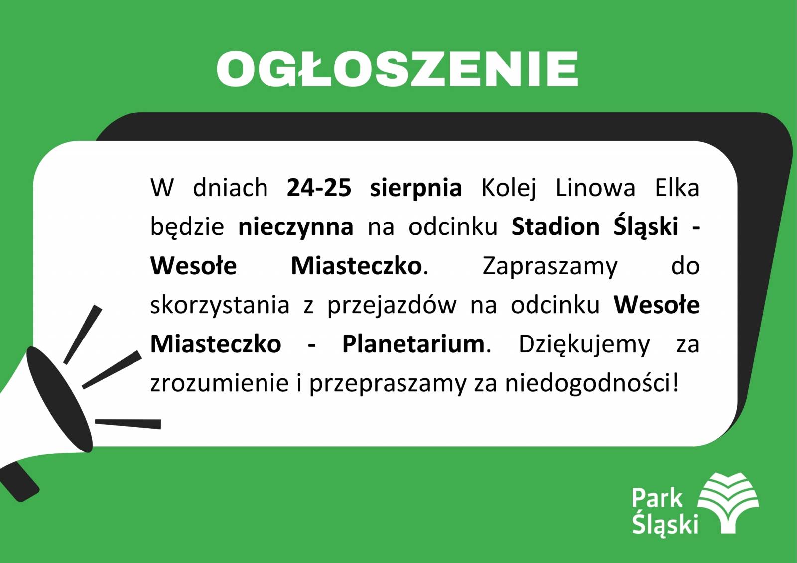 24-25 sierpnia: KL Elka na odcinku Stadion Śląski - Wesołe Miasteczko nieczynna