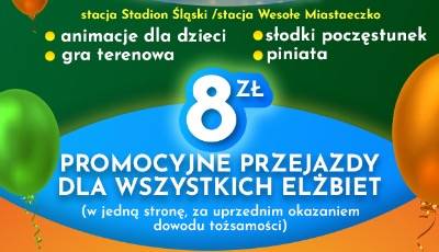 Wszystkie Elki, w najblższy weekend 11 i 12 września, pojadą w promocyjnej cenie 8 zł. Oprócz tego na wszystkich gości czekają dodatkowe atrakcje – animacje dla dzieci, gra terenowa, słodki poczęstunek oraz piniata!