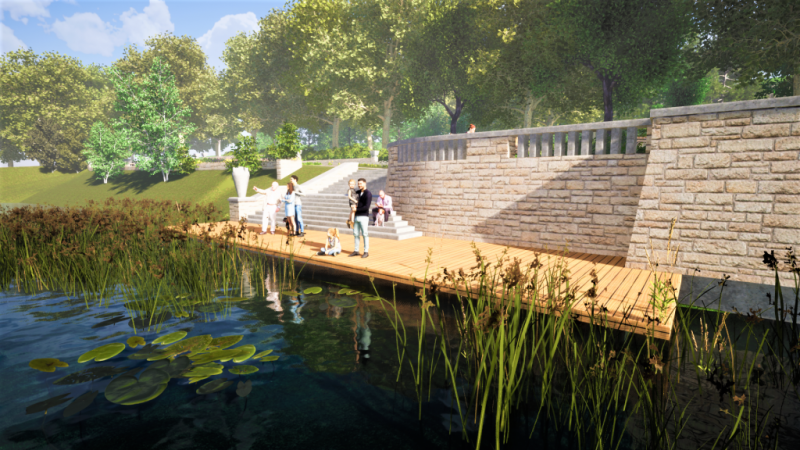 Zaplanowano nasadzenia m.in.: berberysów, hortensji, ostrokrzewów, irg, śmiałków darniowych. Z kolei na skarpach wyrośnie kalina japońska, której towarzyszyć będą parzydło leśne czy bodziszki i irysy. Nabrzeże to oczywiście roślinność wodolubna: tatarak, strzałka wodna, niezapominajka błotna i wiele innych.