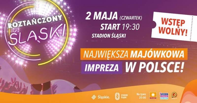 Już tylko dwa dni dzielą nas od największej majówkowej imprezy w kraju, która odbędzie się na Stadionie Śląskim. Na scenie „Roztańczonego Śląskiego” pojawi się 20 znakomitych polskich i zagranicznych wykonawców, wśród nich zespół Alphaville, Ricchi e Poveri, Fun Factory, Kate Ryan, Danzel, Piękni i Młodzi, Boys, Bayer Full i inni. Wstęp wolny.