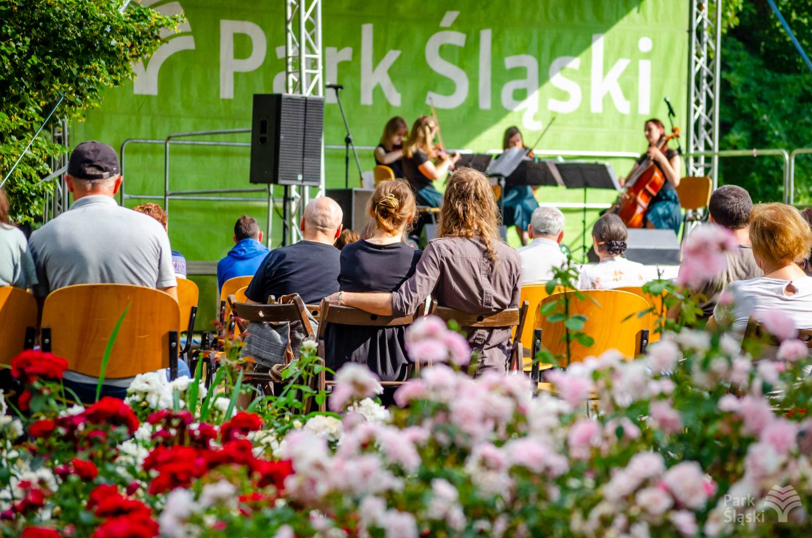 Ein kultiges Ereignis für jeden Freund der klassischen Musik sind die im Rosengarten an jedem Juli- und Augustsonntag stattfindenden Konzerte aus der Reihe „Musikalischer Rosenstrauß”. Während der Veranstaltungen sind viele hervorragende Artisten im Park zu Gast und verzaubern mit der Musik von Mozart, Strauss oder Debussy. Das Event wird gemeinsam mit dem Staatlichen Schulverbund von Musikschulen „Wojciech Kilar” in Katowice veranstaltet. Einer der Schirmherren ist auch Jakub Chełstowski, der Marschall der Woiwodschaft Śląskie.