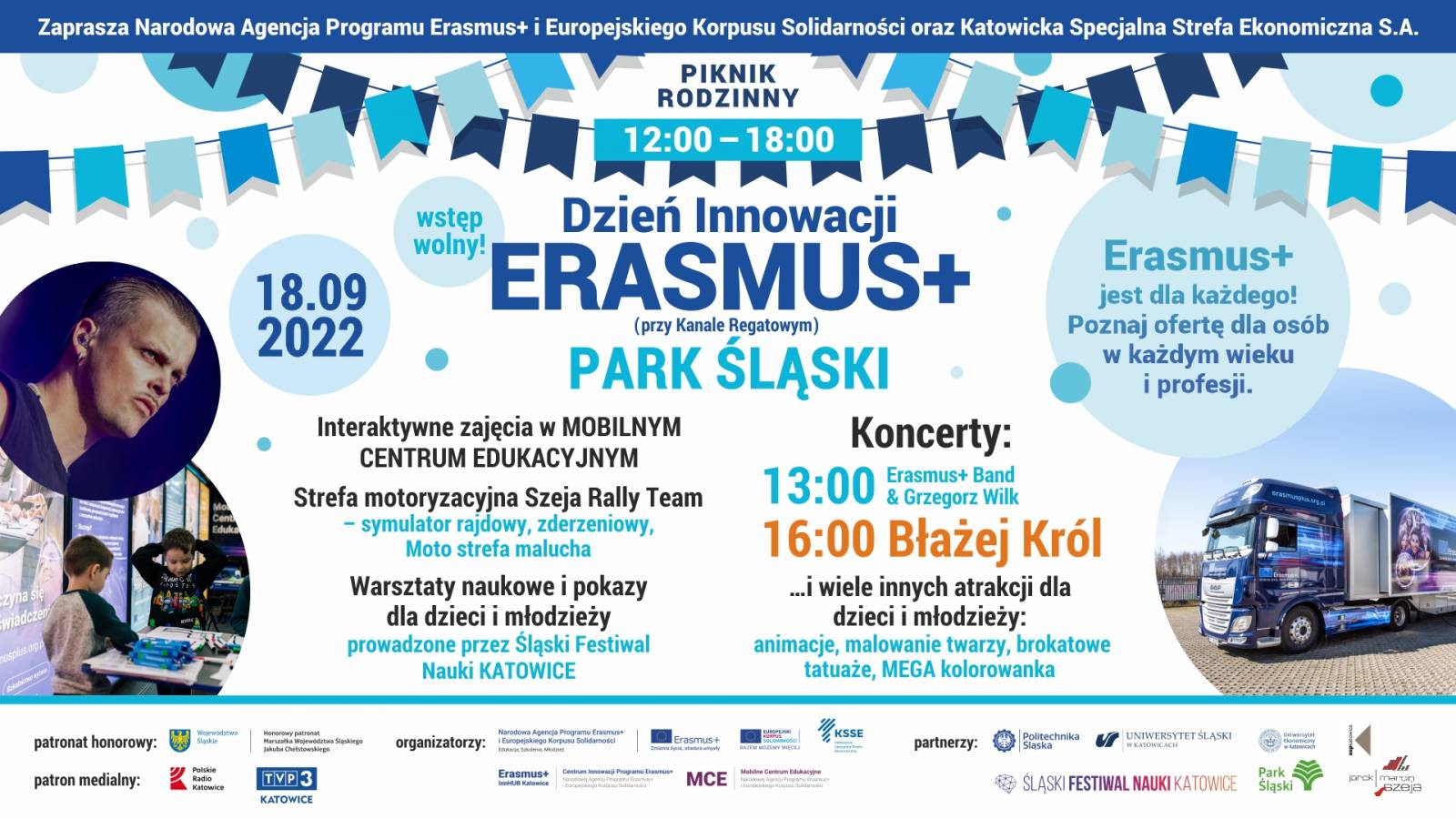 Spotkania z nowoczesną edukacją w Mobilnym Centrum Edukacji, warsztaty prowadzone przez Śląski Festiwal Nauki Katowice, MOTO Strefa Szeja Rally Team, strefa chill KSSE, pokaz łazików marsjańskich, animacje dla dzieci. To tylko niektóre atrakcje, zaplanowane na czas Pikniku Rodzinnego- dzień innowacji Erasmus+, który odbędzie się 18 września w godzinach 12:00 – 18:00 w Parku Śląskim przy Kanale Regatowym. Podczas imprezy dowiecie się również, że ze środków Programu Erasmus+ mogą skorzystać nie tylko studenci.